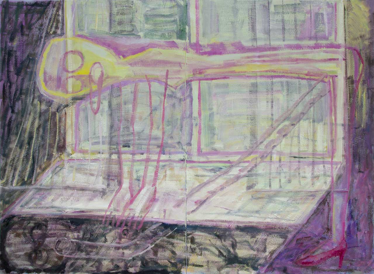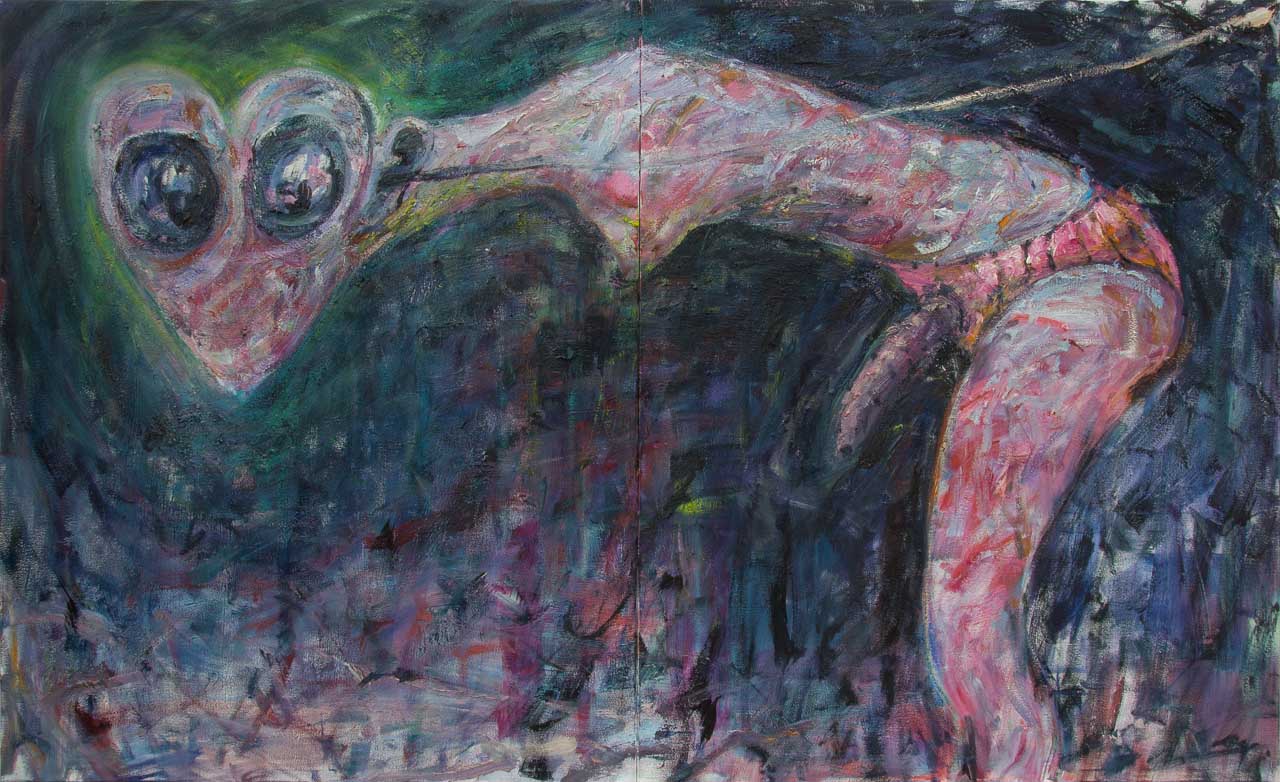 Panty with Dildo, 2022, oil on canvas, 180 x 300 cm